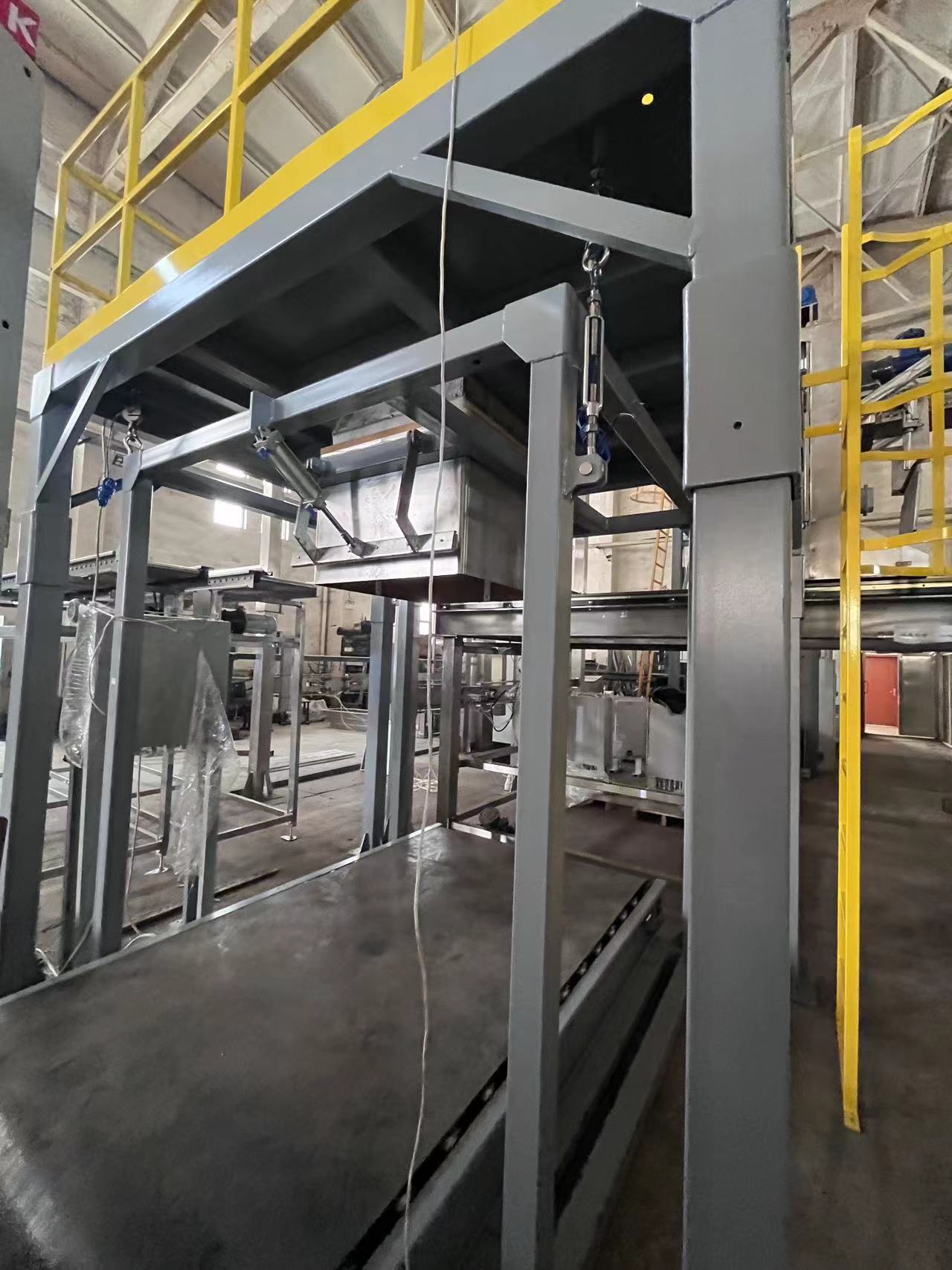 噸袋包裝機是用于噸袋包裝物料的大型稱重包裝設備,集電子稱重、自動脫袋、除塵等功能于一體,是一種多用途包裝機。其主要結構包括氣動掛勾夾包系統(tǒng)、充氣回氣機構、進料計量控制機構、液壓升降機構、輸送滾道及電氣控制系統(tǒng)等。噸袋包裝機通常適用于礦產(chǎn)、化工、建材、糧食、飼料等行業(yè),用于包裝容量大的散裝物料,如粉體、顆粒狀和塊狀物料。